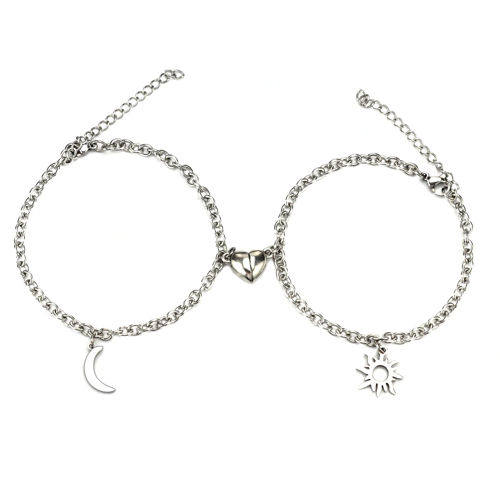 Браслеты из нержавеющей стали для пар, изящные магнитные украшения с изображением солнца, луны, притягательные ювелирные изделия для мужчин и женщин, хороший подарок на день Святого Валентина, 2 шт.