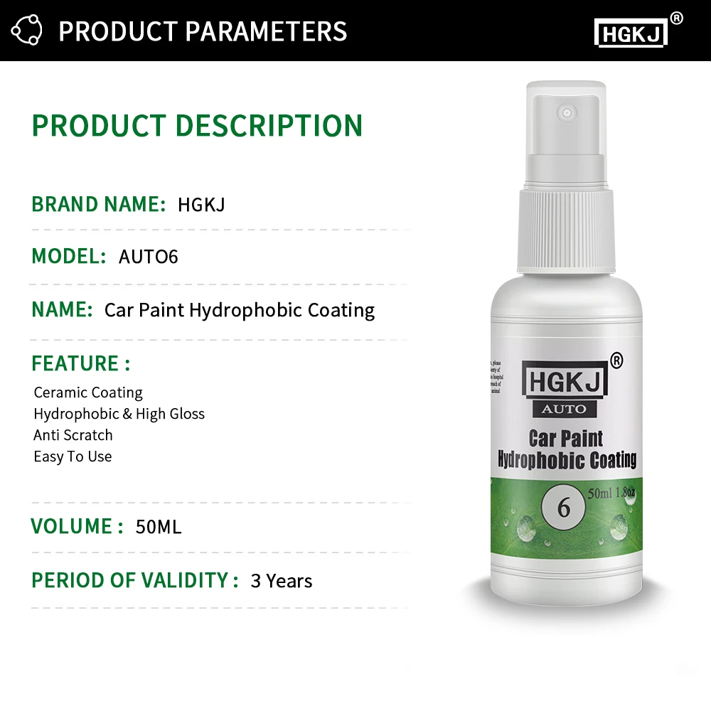 Супергидрофобное керамическое покрытие для автомобиля HGKJ 6, нано-воск, блеск, жидкий блеск, средство для ухода за лакокрасочным покрытием, чистящий спрей, уход за автомобилем, 50 мл