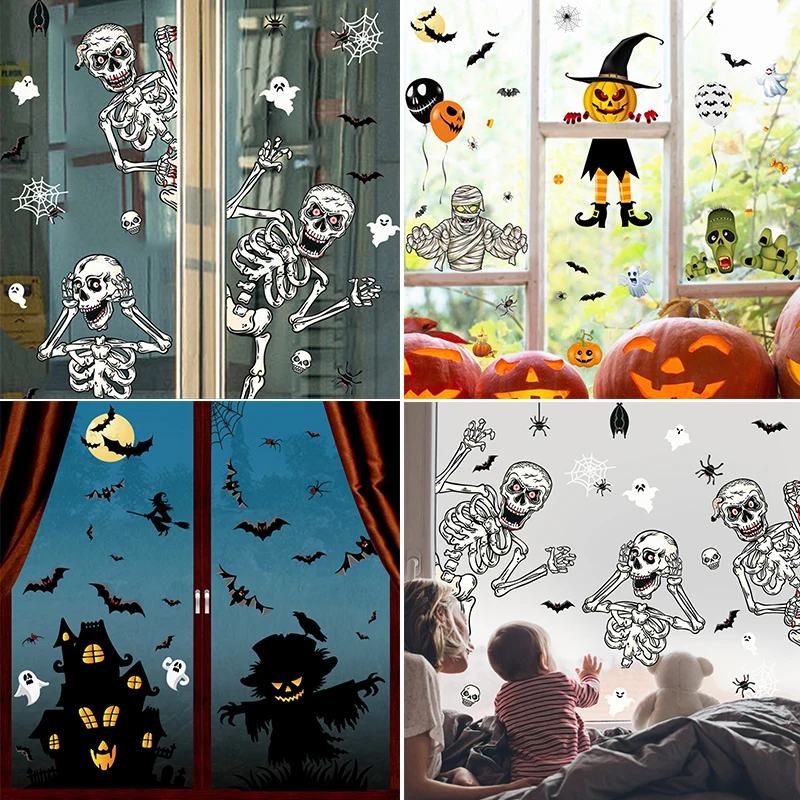 Наклейка на Хэллоуин, дверь, милая череп, паук, летучая мышь, ужас, призрак, вечерние ринка, украшение сделай сам, украшение на Хэллоуин, страшная наклейка