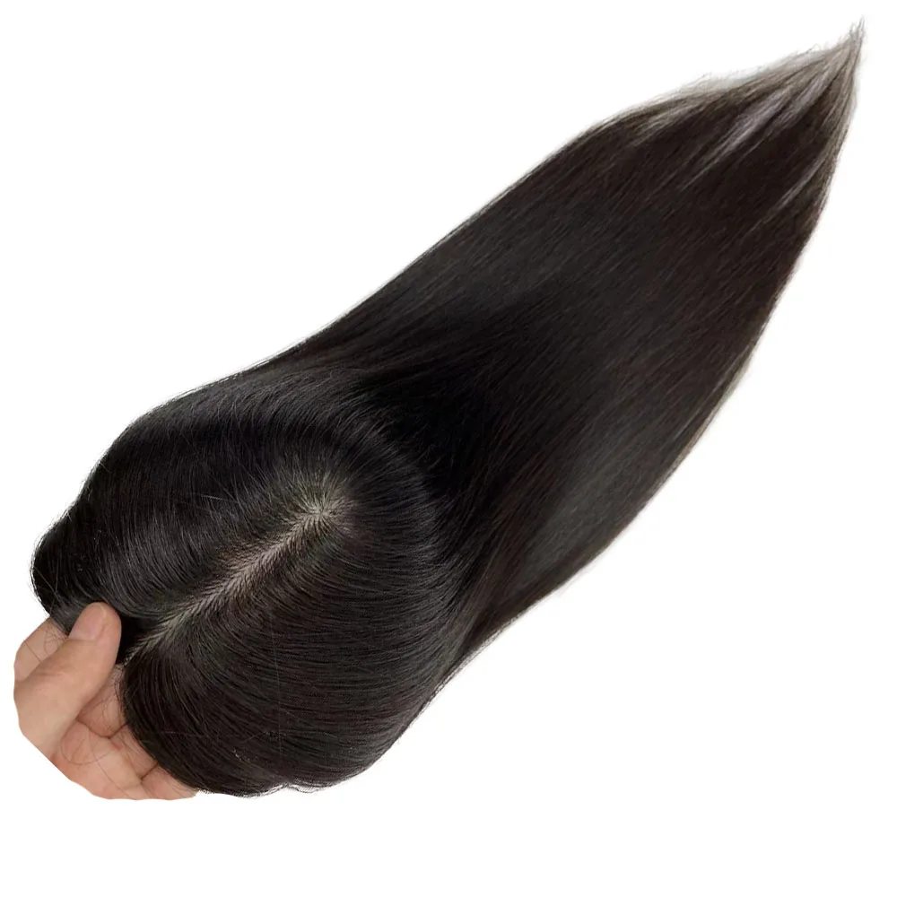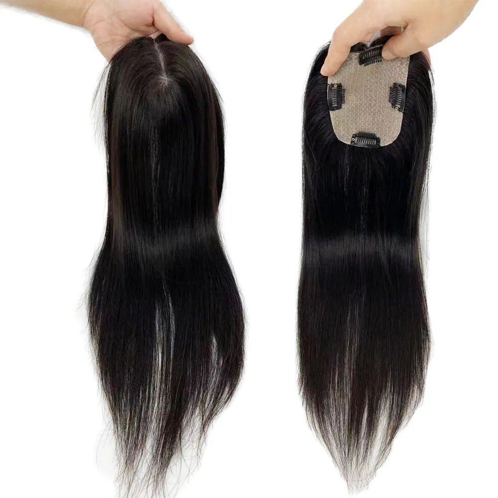 Накладка из человеческих волос с зажимом для искусственных волос 130% плотность Шелковый верх натуральная кожа головы девственные китайские волосы для истончения волос 8x12 см