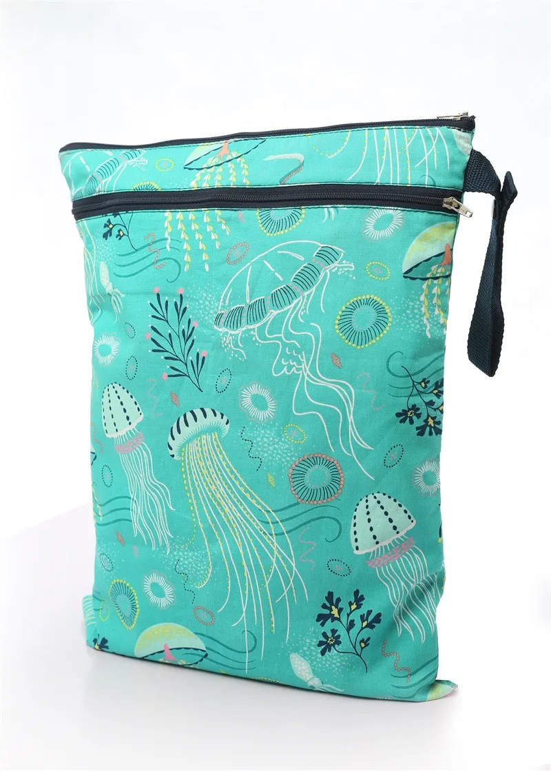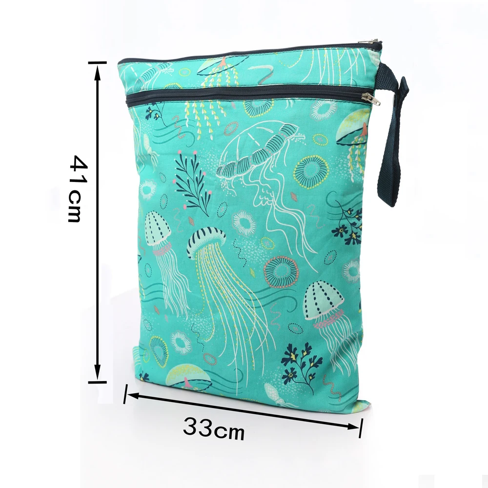 Сумка для детских подгузников с двойной молнией, водонепроницаемая, с принтом, для влажных и сухих подгузников, сумка для коляски, для путешествий, для улицы, сумка для хранения подгузников