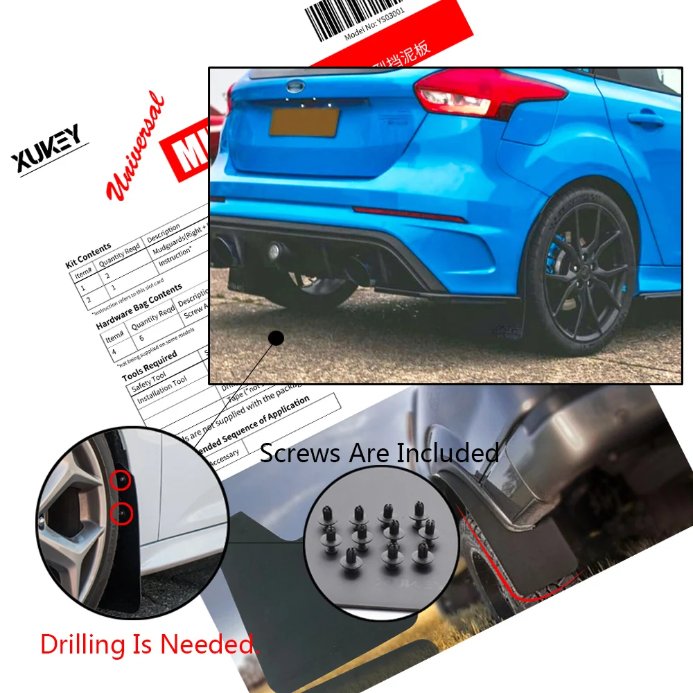 XUKEY Deluxe литые Брызговики обеспечивают отличную защиту нижней части тела и акцентируют стиль транспортного средства. Изготовлен из TPO пластика, чтобы быть жестким и кропотливым. Они литы под контуры транспортного средства для пользовательской посадкиЭти износостойкие грязевые предохранители легко сочетаются с автомобилями и минимизируют риск попадания грязи, дорожных обломков и каменных сколов с передних и задних шин. Обеспечьте дополнительную защиту, улучшая спортивный внешний вид вашего автомобиляБренд: XUKEYПриспособление:Подойдет для всех возрастов и вариантов:Для Ford Focus ST RS SE ST170 ST225 ST250 ST300 RS500