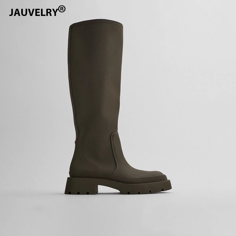 Женские сапоги до колена на платформе, роскошные брендовые Дизайнерские Сапоги на массивном каблуке, осенняя женская обувь без застежки с круглым носком, 2021