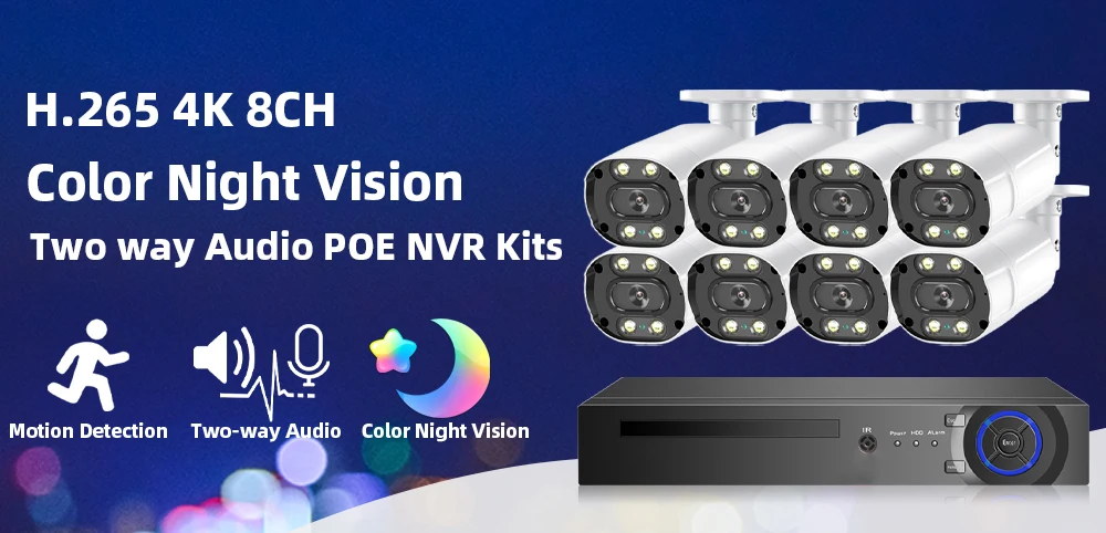 1. Все наши сетевые видеорегистраторы являются реальными H.265 4K 8MP, сетевой видеорегистратор может поддерживать 8MP и 4K max, вы можете подключить 720p,1080p,3mp,4mp ,5mp, камеры 8 МП и 4k с нашим видеорегистратором POE;2. Наш сетевой видеорегистратор поддерживает распознавание лиц, интеллектуальное воспроизведение лиц, обеспечивает видеоизображение сверхвысокой четкости, обеспечивая максимальную детализацию и четкость;3. Наш сетевой видеорегистратор и камеры поддерживают расширенное Сжатие видео H.265, питание через Ethernet,Plug and play, простота настройки;4. Все камеры оснащены встроенным микрофоном и динамиком, поддерживающим двустороннюю запись звука;5. Все камеры имеют металлический корпус, IP66 водонепроницаемый, подходит для внутреннего и наружного применения, надежная безопасность дома;6. Все камеры поддерживают полноцветное дневное ночное видение Ultra HD;7. Поддержка обнаружения движения, оповещения по электронной почте, воспроизведения видео и нескольких языков;8. Поддержка Android,Iphone,Ipad, ПК, VMS,P2P view;9. Удаленный доступ в любом месте и в любое время;10. Подходит для всех видов приложений;