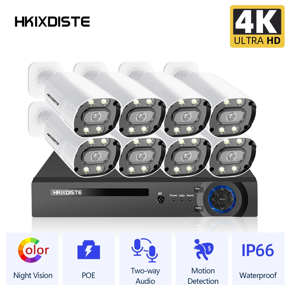 Двухсторонняя аудио камера видеонаблюдения система безопасности комплект 8CH 8MP NVR наружная водонепроницаемая система видеонаблюдения ip-камеры с питанием по POE камера s система