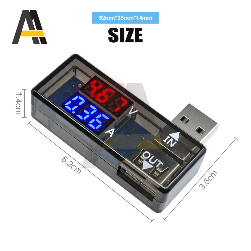 РазмерыUSB Voltmeter Ammeter LED Dual Display Current Voltage Tester