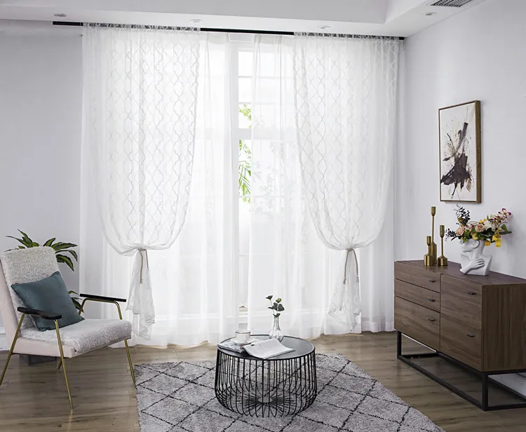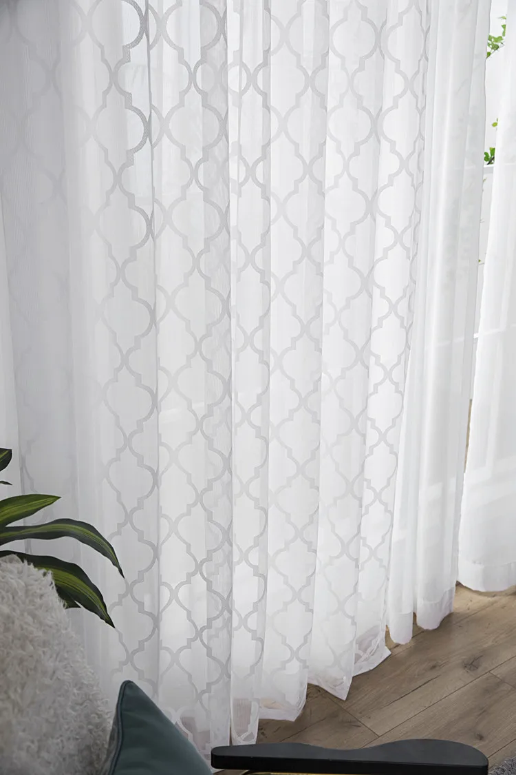 Современные Геометрические белые кружевные тюлевые занавески s для гостиной, спальни, окна, европейские прозрачные Занавески, для обработки окон, для дома, Deocr