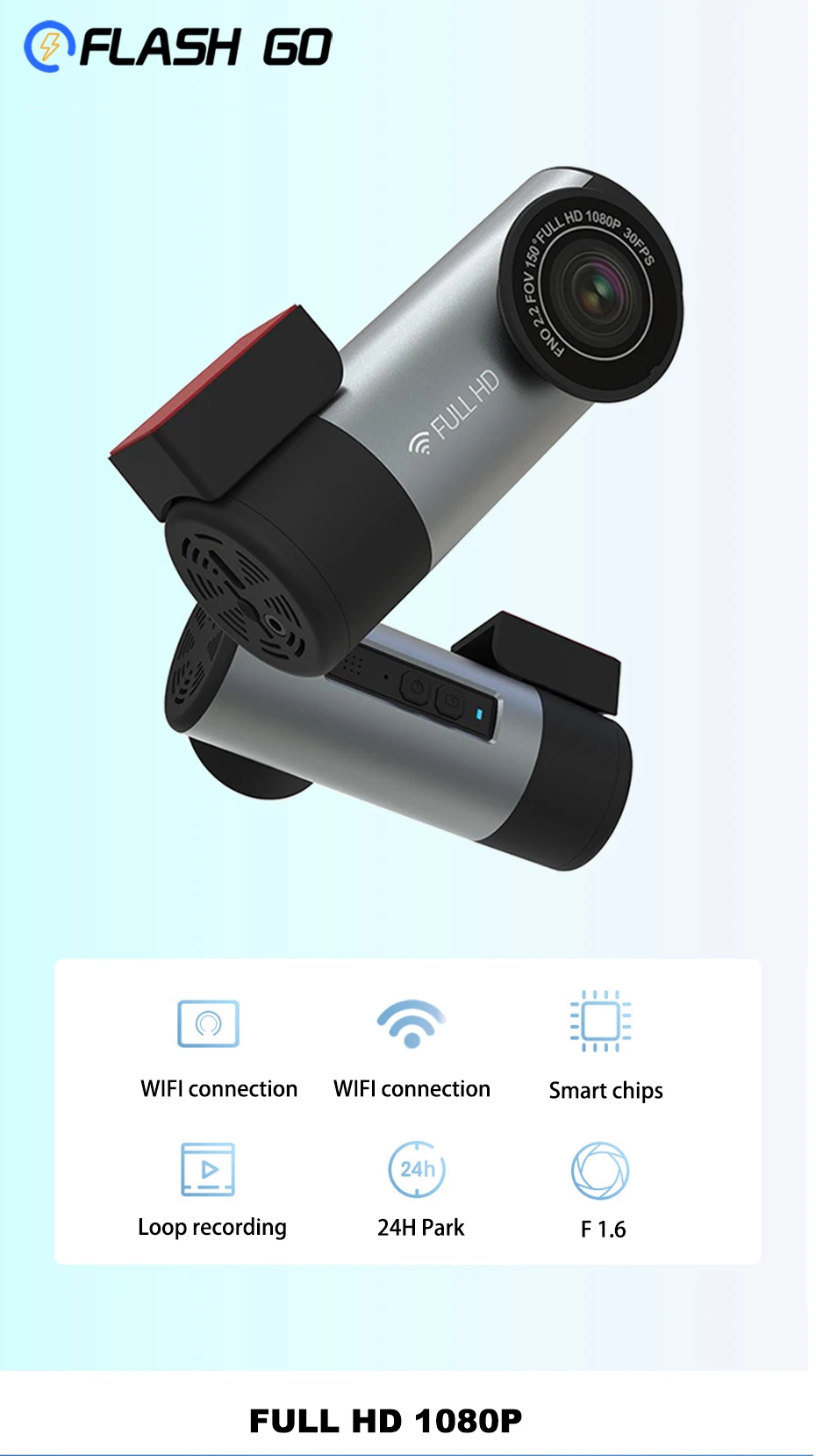 Простое подключение Wi-Fi, просто отсканируйте qr-код в руководстве, чтобы загрузить приложение Roadcam, а затем подключите к wifi с именем BD-DVR, вы можете просматривать и управлять видеорегистратором на своем телефоне