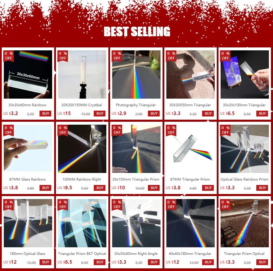 Наши призмы изготовлены из оптического стекла K9. Они проверяются на четкость и несовершенство в процессе производства. Наши призмы отшлифованы вручную и отполированы в соответствии с нашими конкретными требованиями к размерам для поддержания последовательности и качества. Наши призмы немного шире конкурентов, чтобы их легче держать и использовать.