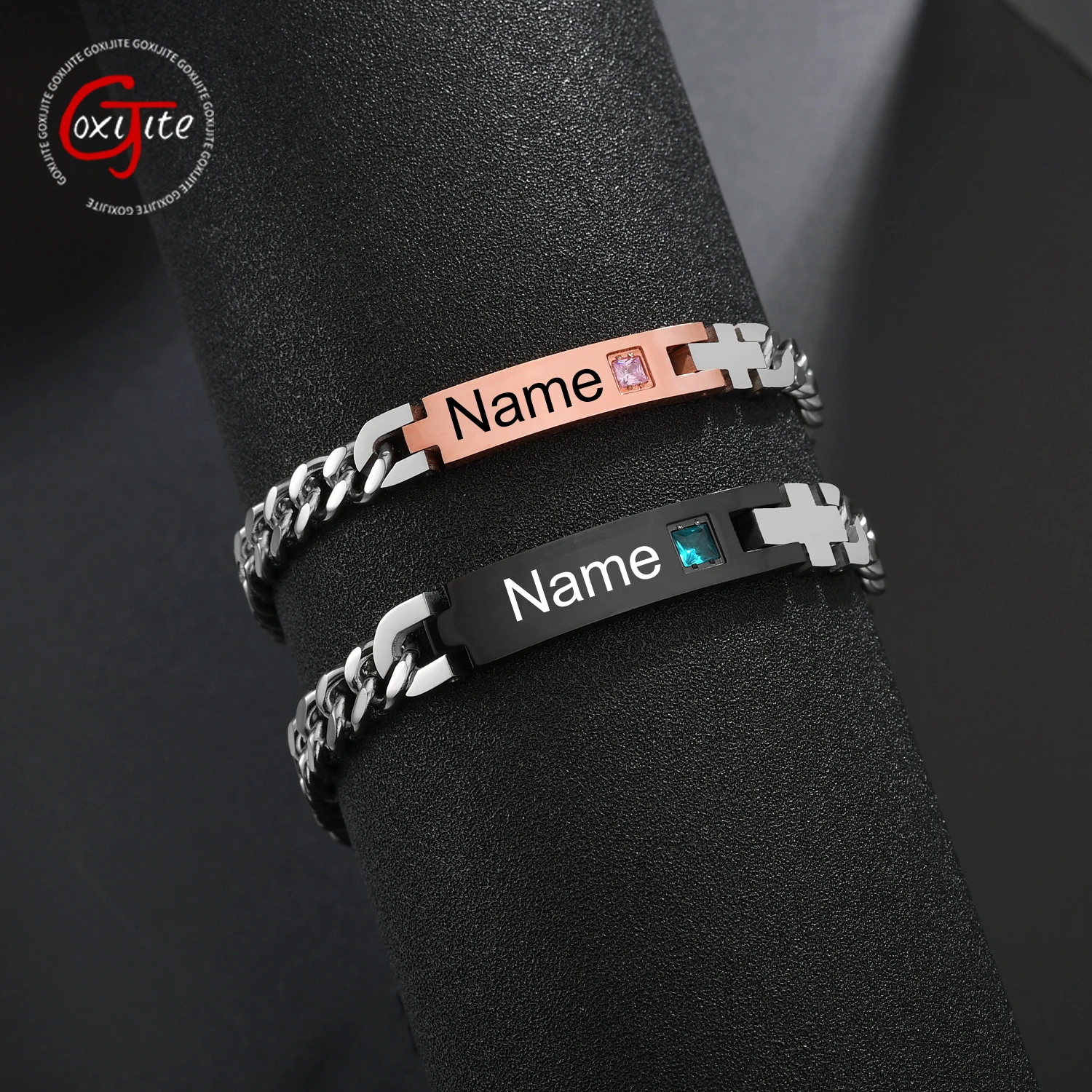Модный браслет Goxijite из камня с датой и именем на заказ для женщин и мужчин, из нержавеющей стали, гравировка названий, магнитный подарок