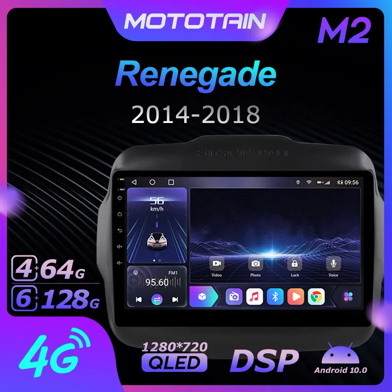 Автомагнитола Mototain, 2 Din, для Jeep Renegade 2014, 2016, 2017, 2018, Android 10,0, мультимедиа, 4G, LTE, 6 ГБ ОЗУ, 128 Гб ПЗУ