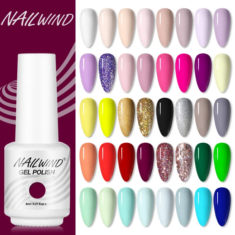 Гель-лак для ногтей Nailwind, 8 мл, 40, горячая распродажа цветов, для маникюра, ногтевого дизайна, гель для ногтей с блестками Базовое покрытие, матовое покрытие, УФ-Гель-лак для ногтей