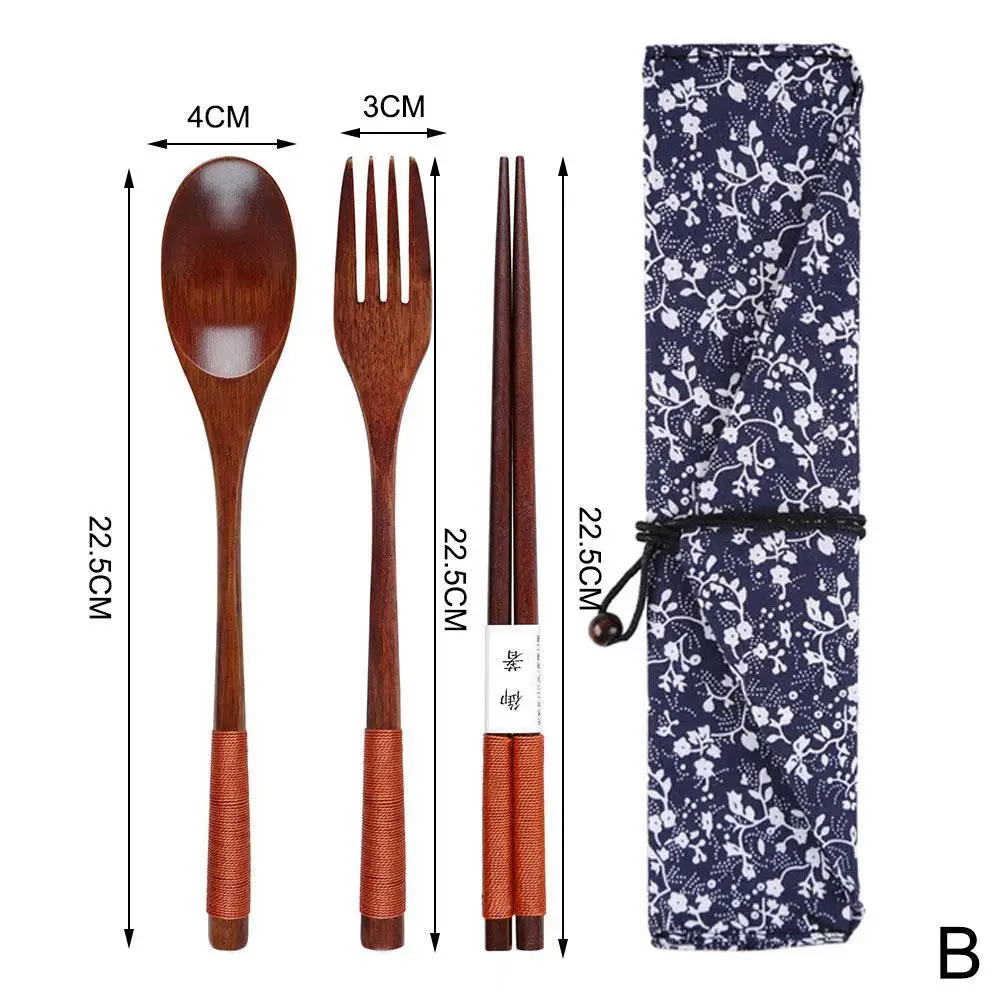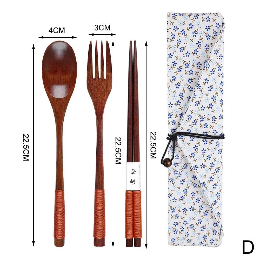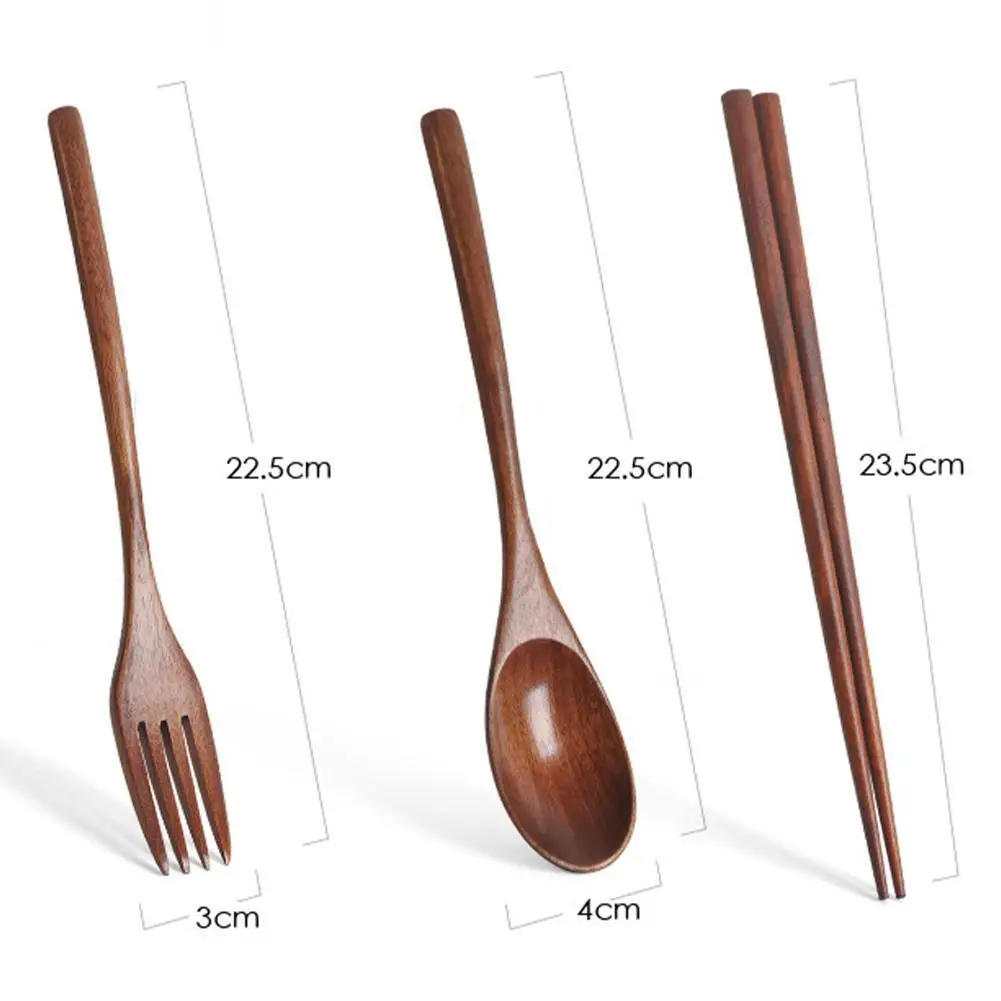 Набор деревянной посуды для дома и путешествий с сумкой для хранения, столовые приборы для супа, десерта, вилки, ложки, палочки, столовые приборы, набор посуды, кухонная утварь
