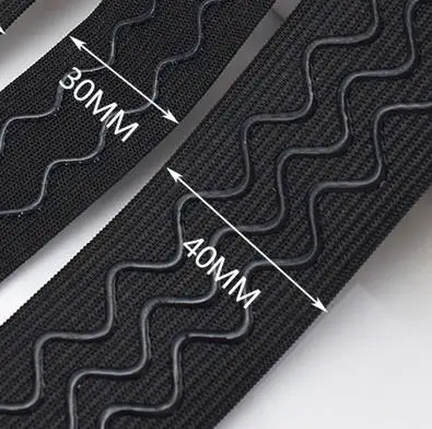Силиконовая эластичная тесьма 1 "черный 2 линии волнистые формы противоскользящее покрытие швейная ручка лента аксессуары для одежды