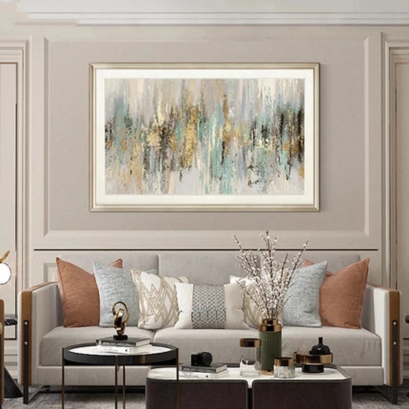 Абстрактное искусство, декоративная большая Настенная картина, картина маслом, вертикальные рамки ручной работы для украшения гостиной, Золотая картина