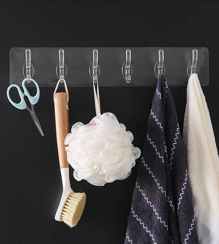 Прозрачный пластиковый клей крючки для кухни и ванной комнаты 6 Ряд...