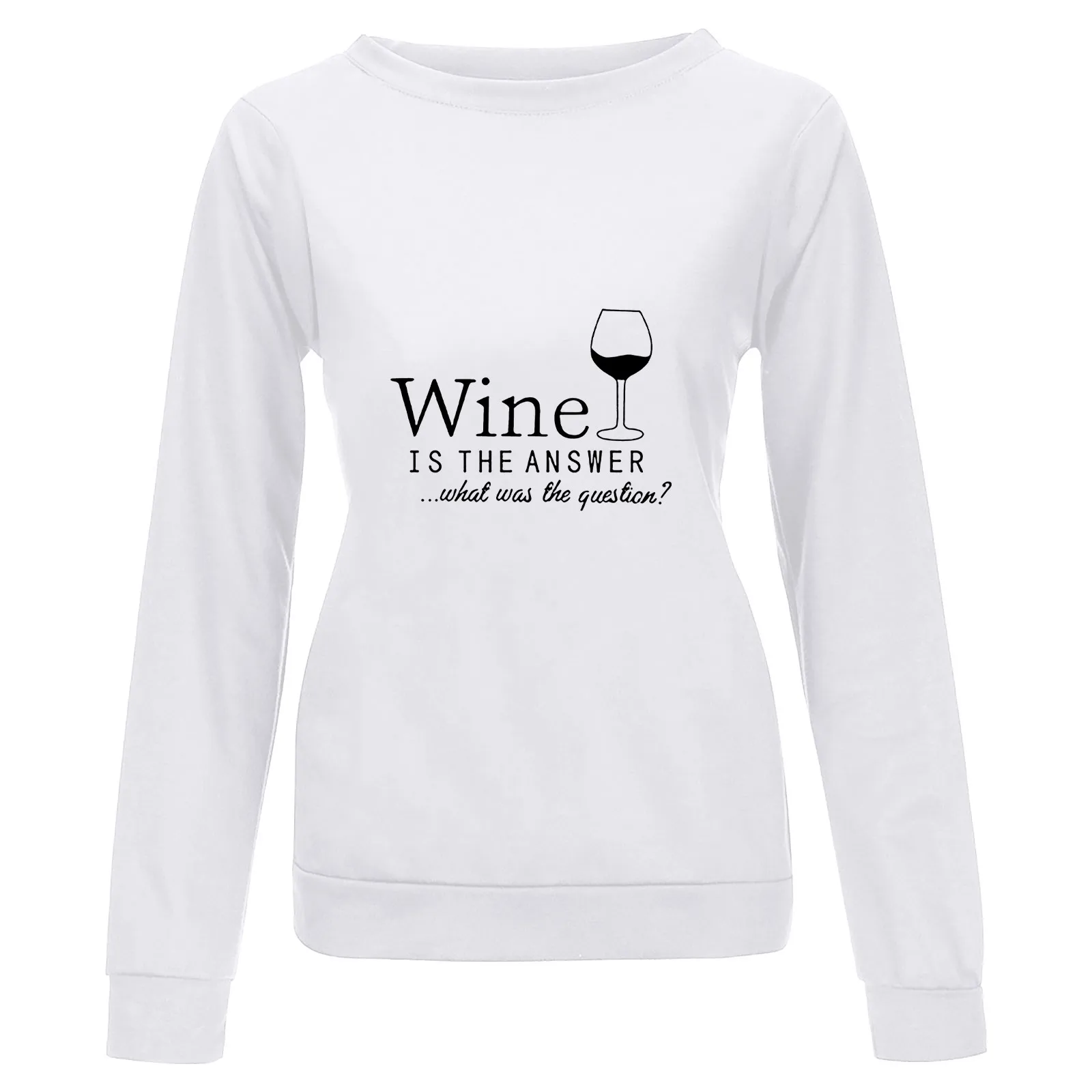 Женская Повседневная однотонная блузка с круглым вырезом пуловер, свитшот с принтом