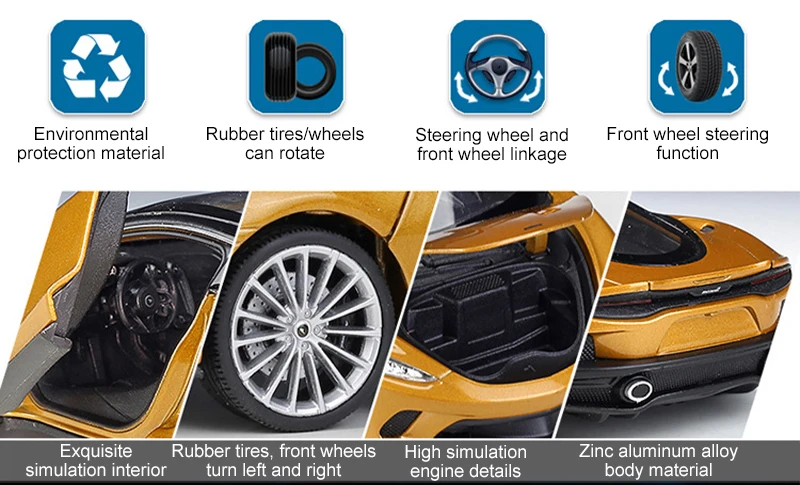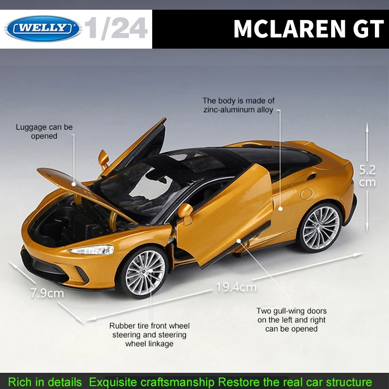Welly 1:24 машинки McLaren GT, модель автомобиля из сплава, имитация автомобиля, украшение, коллекция, подарок, игрушка, литье под давлением, модель для мальчиков, детские игрушки