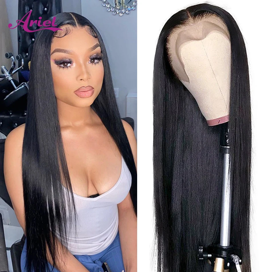 Парики на сетке 4 х4, бразильские парики из человеческих волос, предварительно выщипанные прямые парики на сетке спереди, парики из человеческих волос 10-30 дюймов для чернокожих женщин
