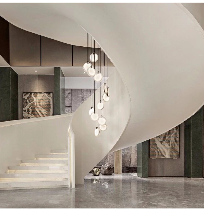 Лампа для лестницы, длинная люстра в скандинавском стиле, креативная мраморная вилла, винтовая лестница, креативная декоративная люстра, лампа для вестибюля отеля