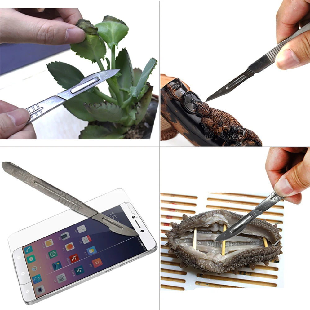 Хирургический скальпель, 20p10p, 11 #23 # лезвия из углеродистой стали + 1p ручка из нержавеющей стали, скальпель Режущий инструмент для домашнего творчества, ремонт хирургического ножа