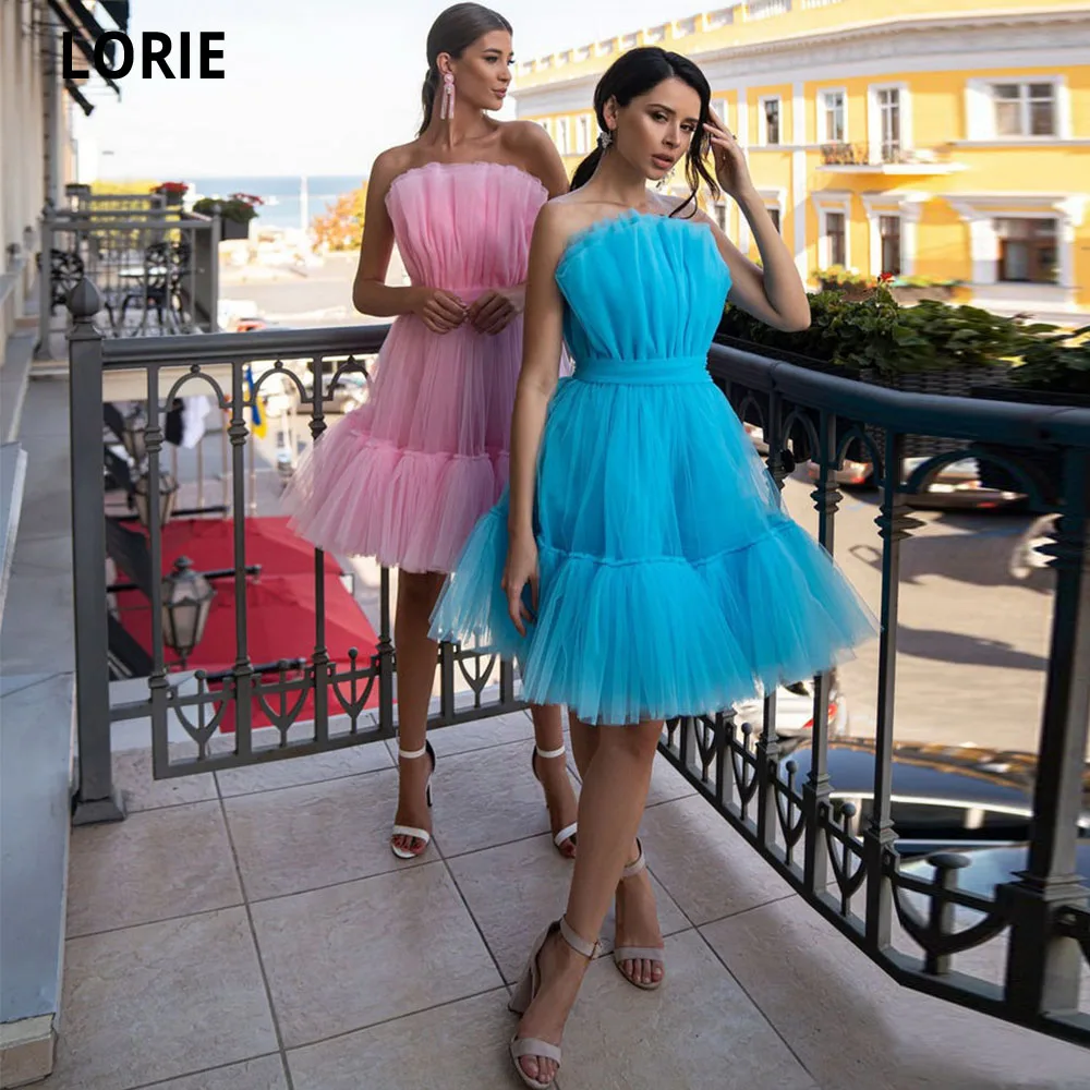 LORIE розовыесиние трапециевидные тюлевые короткие платья для выпускного вечера 2021 с зубчатым вырезом новый дизайн длиной до колена вечернее платье с поясом