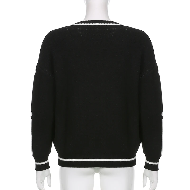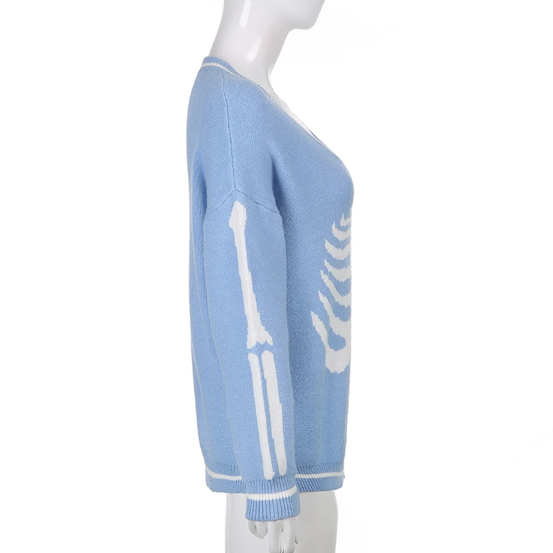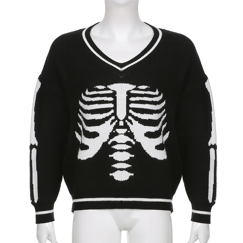 Свитер HEYounGIRL оверсайз с принтом черепа и V-образным вырезом, повседневный Свободный вязаный Топ в стиле Харадзюку, пуловеры, женский джемпер в Корейском стиле панк на зиму