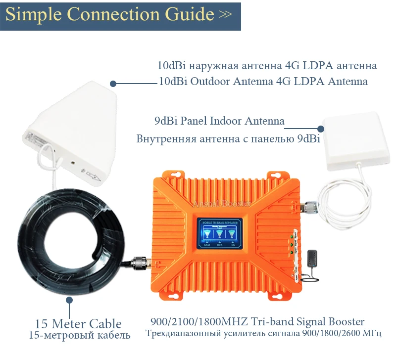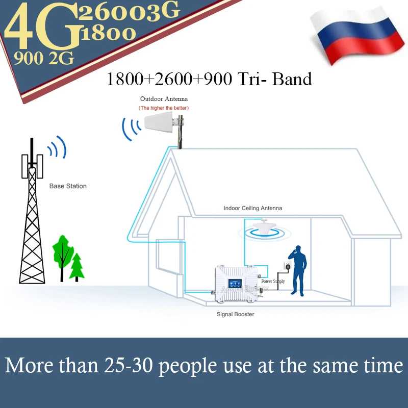 Россия 4G сотовый телефон усилитель 900 1800 2600 трехдиапазонный 4G мобильный телефон усилитель сигнала GSM повторитель 2G 3G 4G усилитель сигналаХарактеристика:1. Высокий коэффициент усиления: 75 дБ. Покрытие: 550 квадратных метров без препятствий2. Улучшение 2G GSM 900mhz ,4G DCS LTE 1800mhz ,4G LTE2600Mhz одновременно.3. Поддержка более 25-30 сотовых телефонов для одновременного использования4. Уменьшает мощность передачи мобильного телефона5. Легко установить. Эта ссылка является усилителем и источником питания.6. ЖК-дисплей и светодиодный сигнальный светильник указывают на состояние сигнала.7. Подходит для: России, Испании, Франции, Бразилии, Европы, Азии и т. Д. 8. Гарантия: 1 год!【Лучший голос и дата 】получайте меньше сброшенных звонков, лучшее качество голоса, более быстрая загрузка и загрузка. Вы можете поделиться с вами приятным временем с помощью хорошего голосового звонка, и вы не беспокоитесь о том, что звонок неожиданно отпадет.