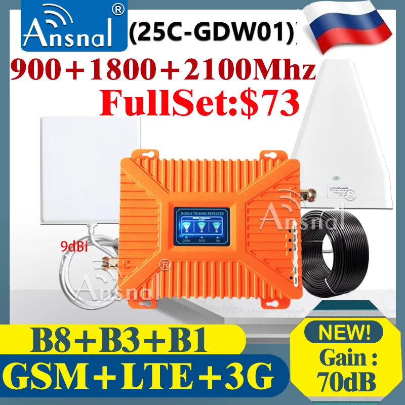 Доставка из России 900 1800 2100 МГц 3-полосный усилитель сигнала мобильного телефона LTE GSM WCDMA UMTS 4G Сотовый усилитель 2g 3g 4g ретранслятор сигнала Характеристика:1. Высокий коэффициент усиления: 70 дБ. Покрытие: 550 квадратных метров без препятствий2. Улучшение 2G GSM 900mhz, 3G UMTS WCDMA 2100mhz,4G DCS LTE 1800mhz одновременно.3. Поддержка более 25-30 сотовых телефонов для одновременного использования4. Уменьшает мощность передачи мобильного телефона5. Легко установить. Эта ссылка является усилителем и источником питания.6. ЖК-дисплей и светодиодный сигнальный светильник указывают на состояние сигнала.7. Подходит для: России, Испании, Франции, Бразилии, Европы, Азии и т. Д. 8. Гарантия: 1 год!【Лучший голос и дата 】получайте меньше сброшенных звонков, лучшее качество голоса, более быстрая загрузка и загрузка. Вы можете поделиться с вами приятным временем с помощью хорошего голосового звонка, и вы не беспокоитесь о том, что звонок неожиданно отпадет.