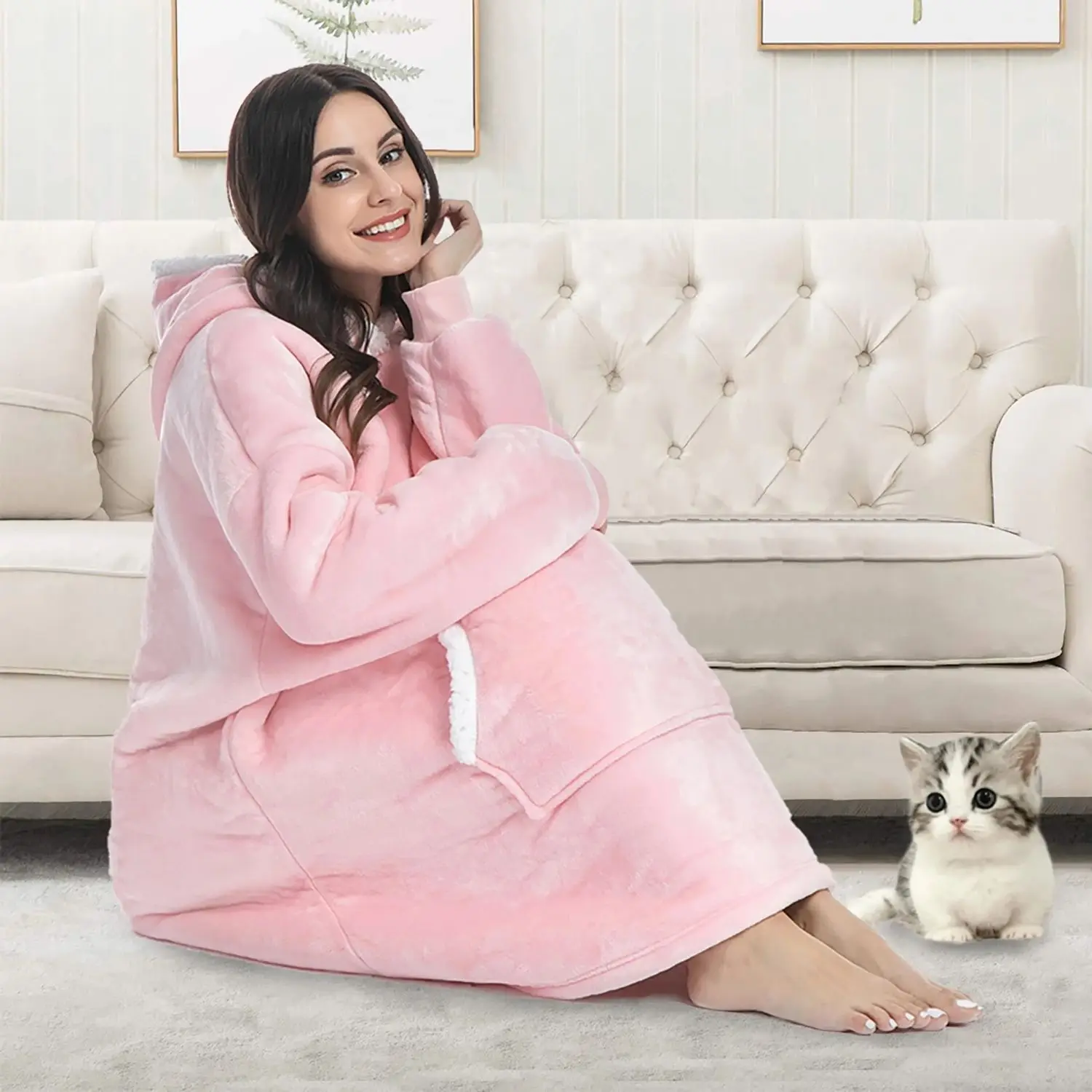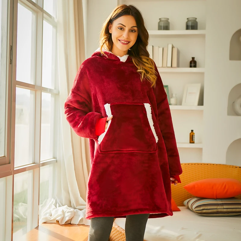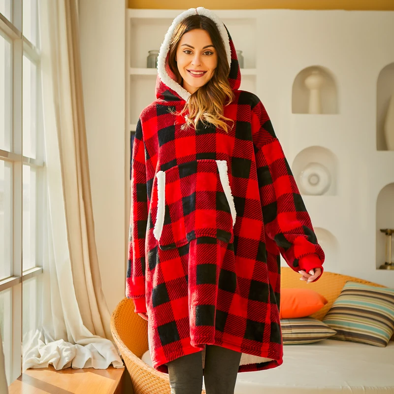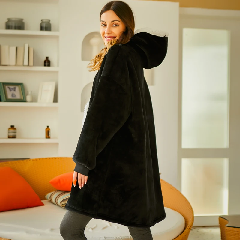 Женское зимнее одеяло с капюшоном, одеяло большого размера на флисо...