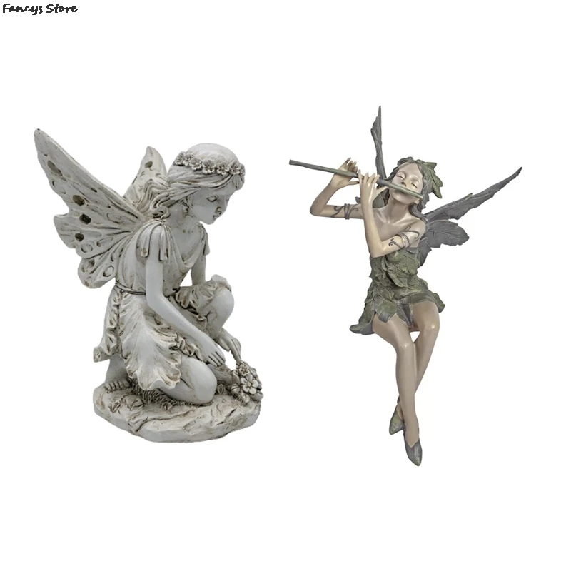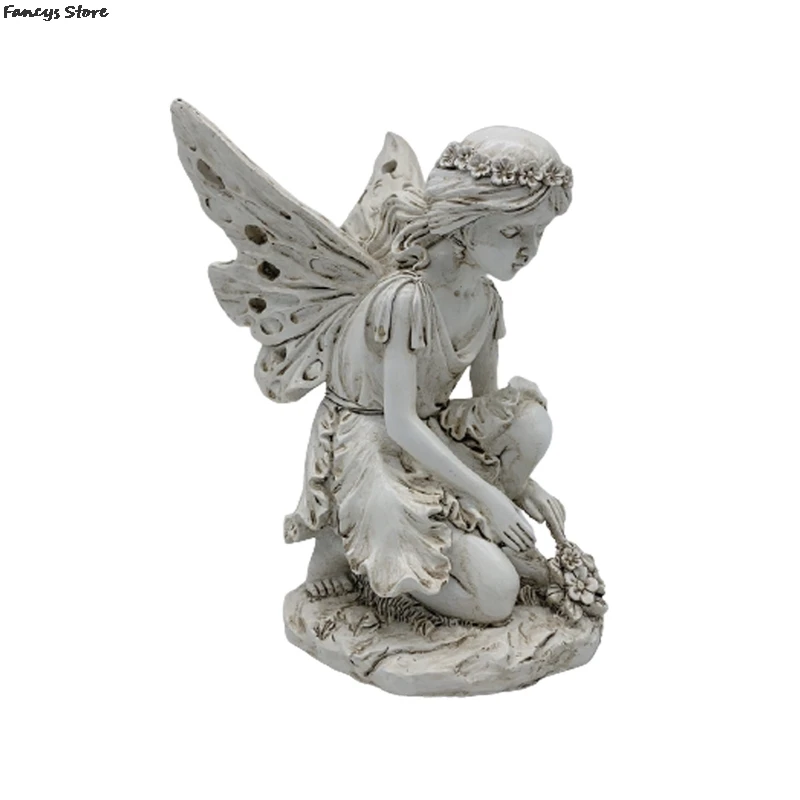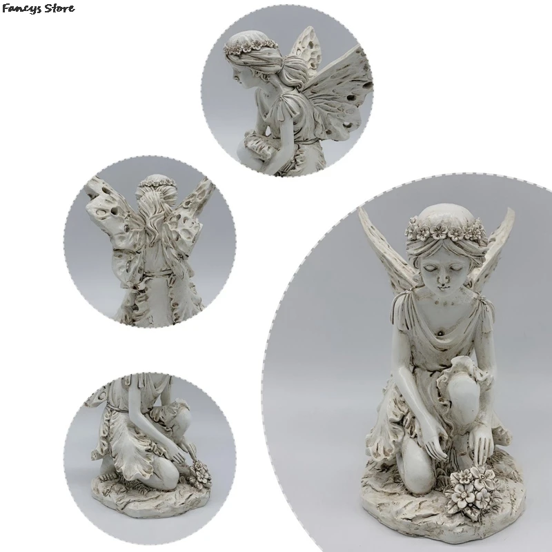 Цветочная сказочная канавка, Художественная Скульптура, статуэтки, декор для сада, ангел, полимерные поделки, ландшафтное украшение для дома, уличный миниатюрный фонтан