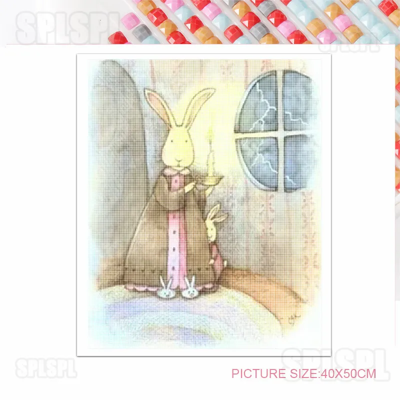 Картина из квадратныхкруглых страз, вышивка с кроликом, розой, карт...