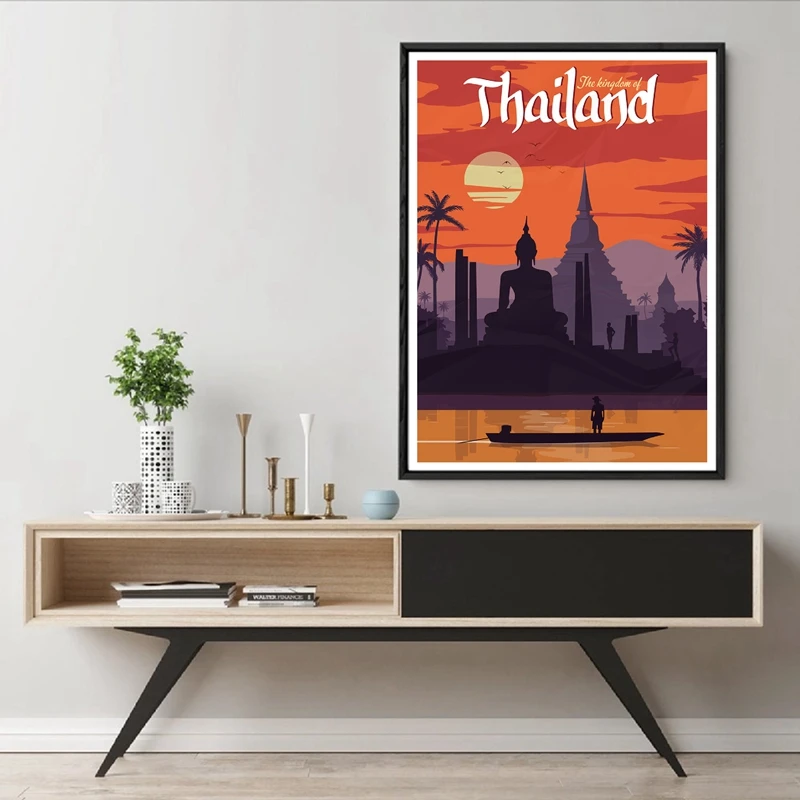 Винтажный пейзаж, плакат, Тайланд, Настенная картина, холст, картина Будда, Бангкок, картина для домашнего декора, без рамки