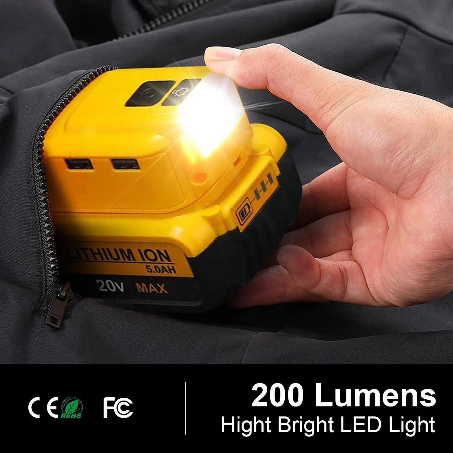 Бесплатная доставка, адаптер для литиевого аккумулятора 14,4 В с двойной зарядкой USB, 12 В постоянного тока, светодиодный аварийный светильник для Dewalt, MAKITA, Milwaukee