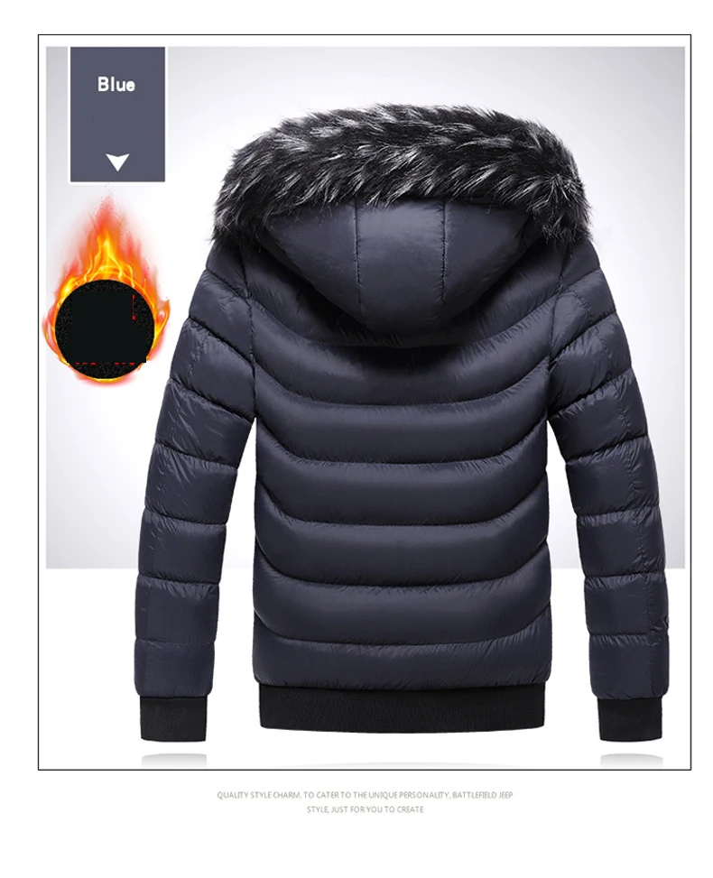 Мужская теплая куртка с меховым капюшоном, парка на хлопковой подкл...