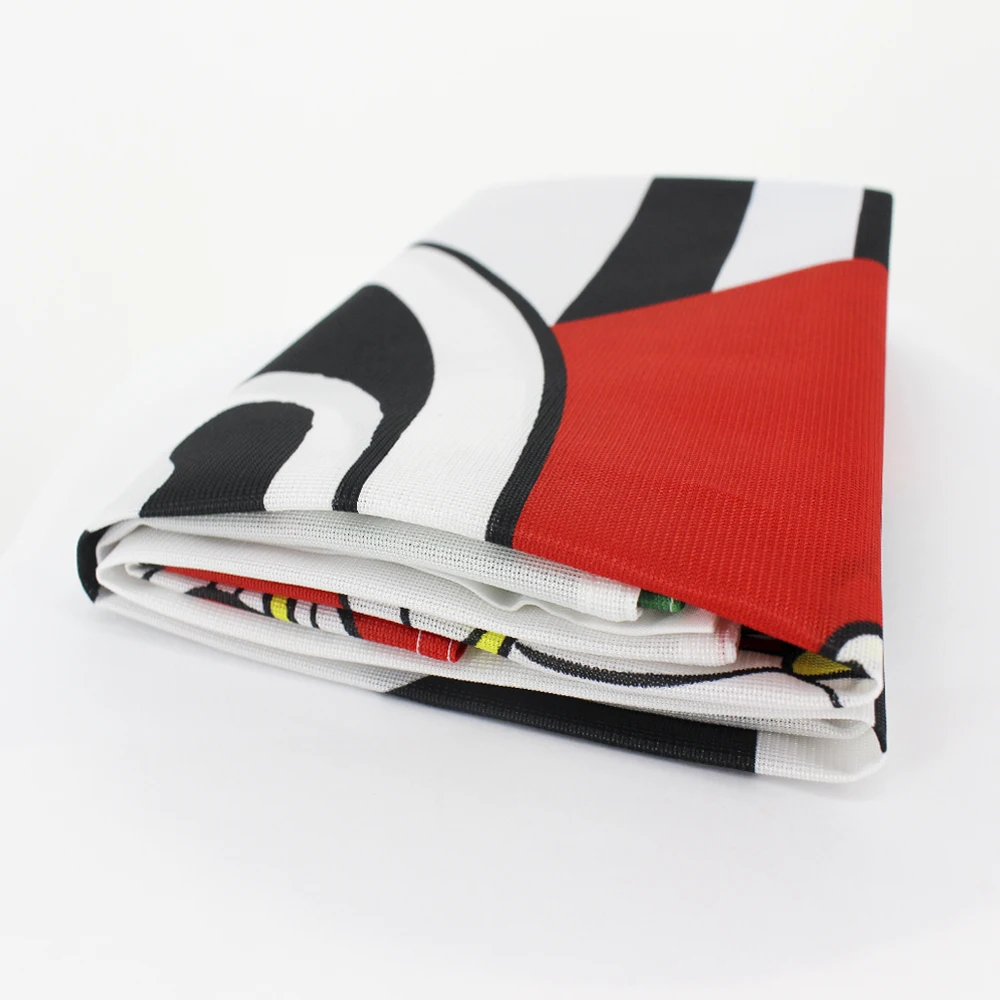 Как показано на картинке, флаг высокого качества, хороший эффект печати и не легко выцветает. Очень прочный!