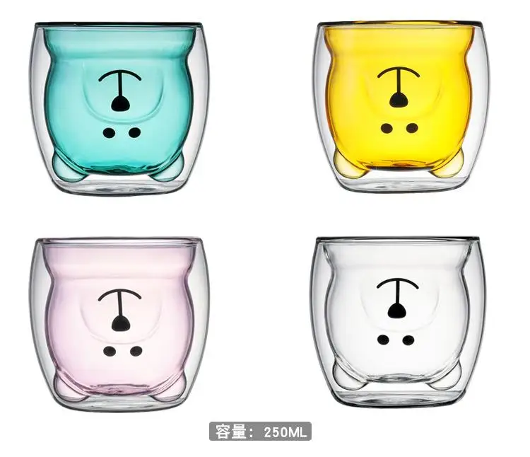 Двухслойная настенная милая посуда для пива, чая, молока, виски, посуда для напитков, подарок, чашка для кофе в виде животного, эспрессо, стеклянные кружки ручной работы, термостойкие