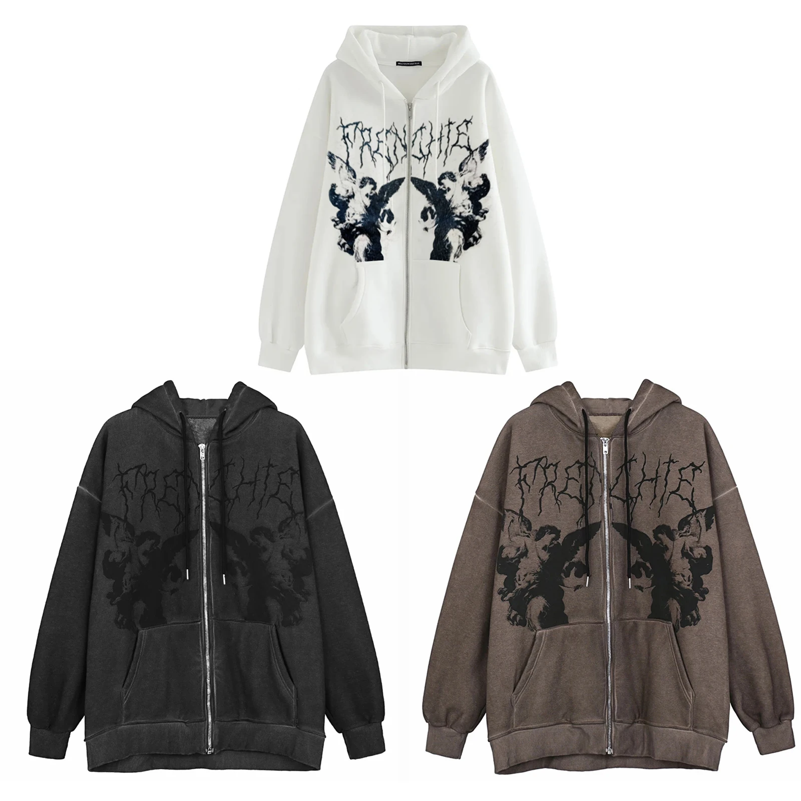 Свитшот с капюшоном, свободная куртка с длинным рукавом и принтом, пуловер на молнии с карманами для мужчин и женщин, новинка 2021, уличная одежда
