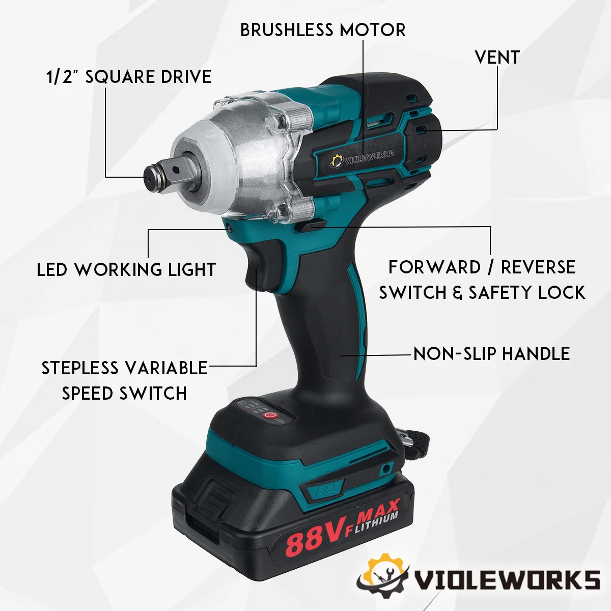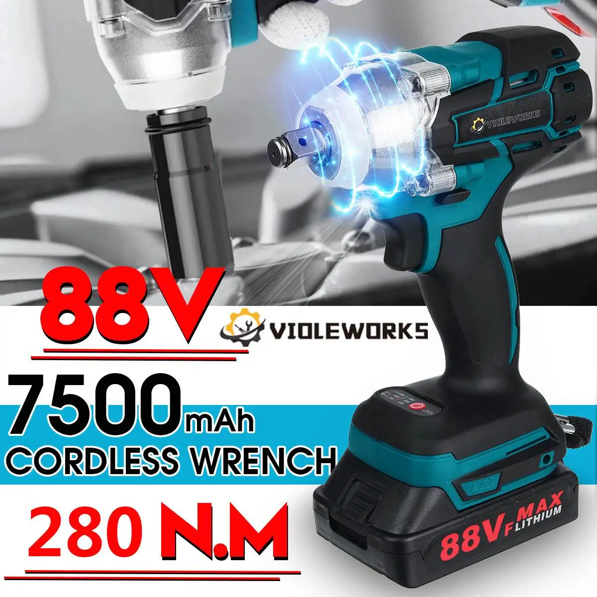 88VF 680NM Электрический беспроводной бесщеточный ударный гаечный ключ бурильная розеткаПримечание: корпус также подходит для аккумулятора Makita!Спецификация:Бренд: VIOLEWORKSЦвет: черный + синийКвадратный привод: 1/2"Макс. Крутящий момент: 680 N.MСкорость без нагрузки: 0 ~ 5800 об/минСкорость удара: 0-~ 5800 в минутуЕмкость аккумулятора: 7500 мАчВходная мощность: 110-240 В переменного токаОпциональный узор: 1 комплект батарей/2 комплекта батарейОсобенности:-1/2 "Квадратный привод.-Легко сделать или отменить автомобильные колеса.-680N.M высокий крутящий момент, плавное переключение скорости.-Мощный электрический гаечный ключ, многоцелевой, супер мощный.-Вал из вольфрамовой стали, высокая твердость и износостойкость.-Подходит для строительных площадок, технического обслуживания, деревообработки и т. Д.-Бесщеточный двигатель не генерирует искры, когда он работает, и двигатель не изнашивается.Посылка включает в себя:Рисунок 1:Ударный ключ-1 шт.1 х батарея 88VF1 х адаптер питания1 x Руководство пользователяРисунок 1:Ударный ключ-1 шт.2 батареи 88VF1 х адаптер питания1 x Руководство пользователяПримечания:1. Ручное измерение, пожалуйста, учитывайте погрешность в 1-3 см, спасибо.2. Пожалуйста, оставьте нам сообщение о вашем предпочтительном рисунке, иначе мы отправим товар случайным образом.3. Из-за разницы между различными мониторами изображение может не отражать фактический цвет изделия. Мы гарантируем, что стиль такой же, как показано на фотографиях. Пожалуйста, поймите, спасибо!