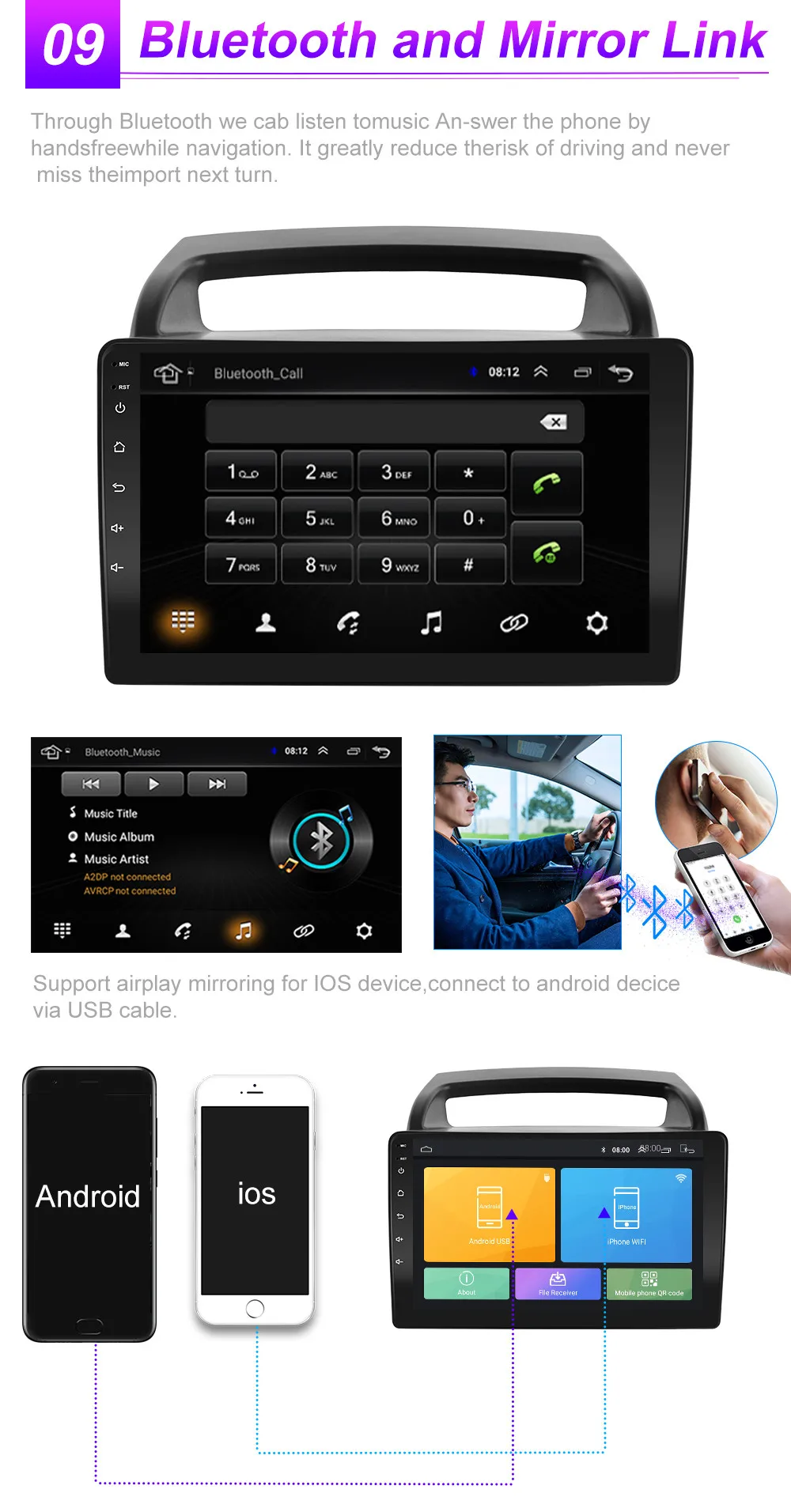 4G типы имеют слот для sim-карты 4G и встроенный wifi, независимо от того, где вы едете, вы будете наслаждаться весельем от интернет-серфинга, что делает его возможным для онлайн-навигации/музыки/кино и т. Д.Перед включением устройства введите sim-карту.Включает слот для карты 4G и антенну 4G!
