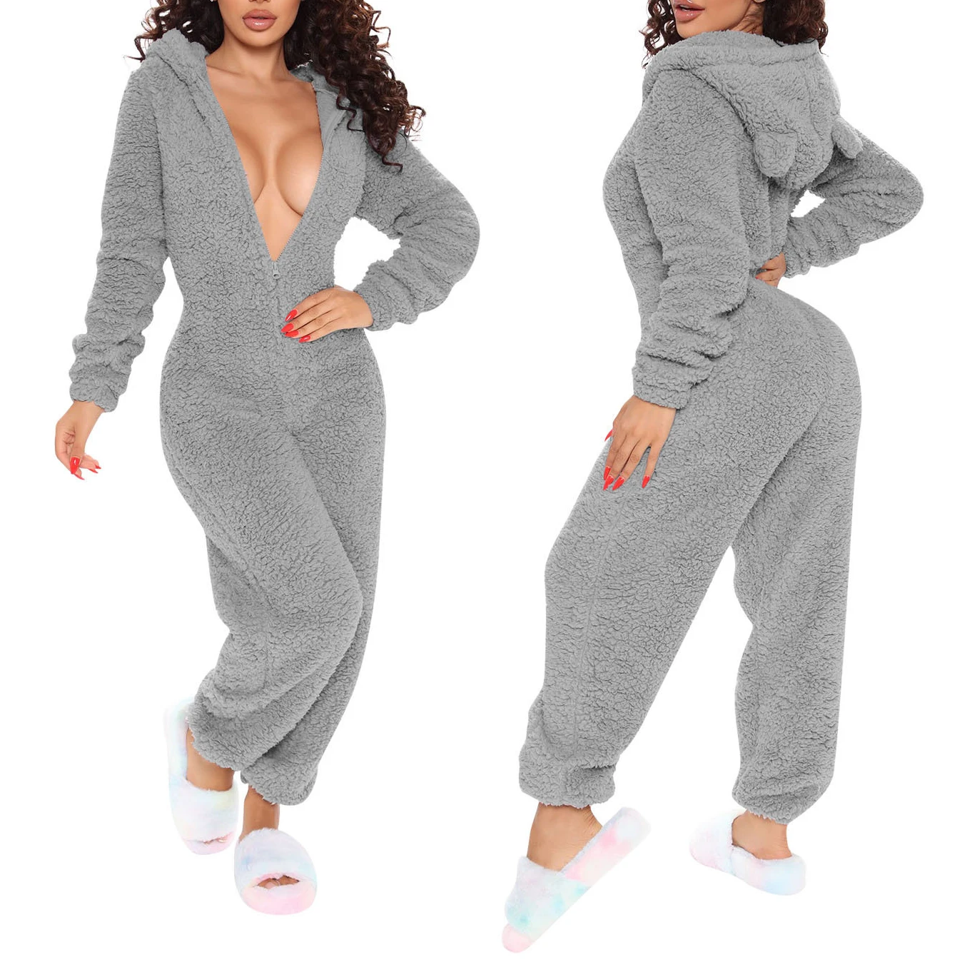2020 зимняя теплая Пижама для женщин милые пушистые флисовые комбин...