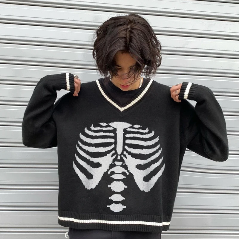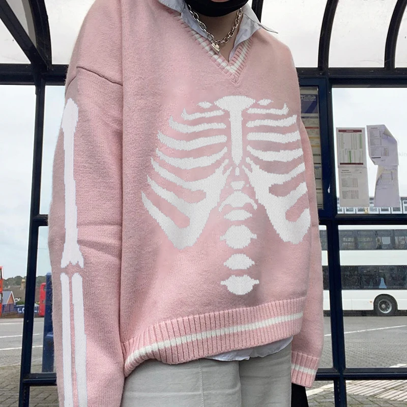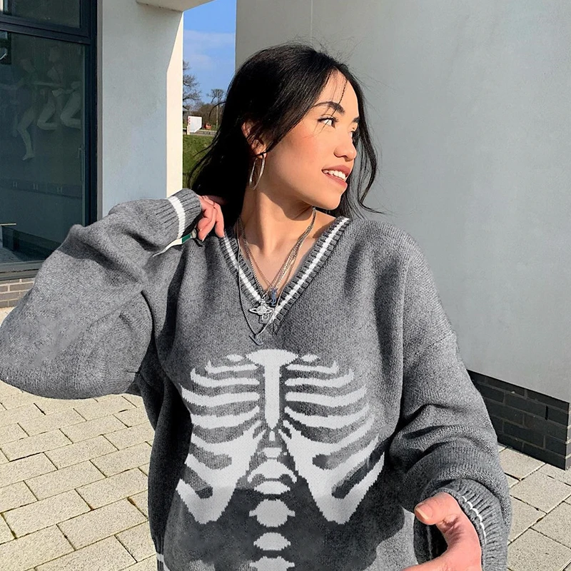 Женский свитер в готическом стиле со скелетом Y2K, модный Свободный...