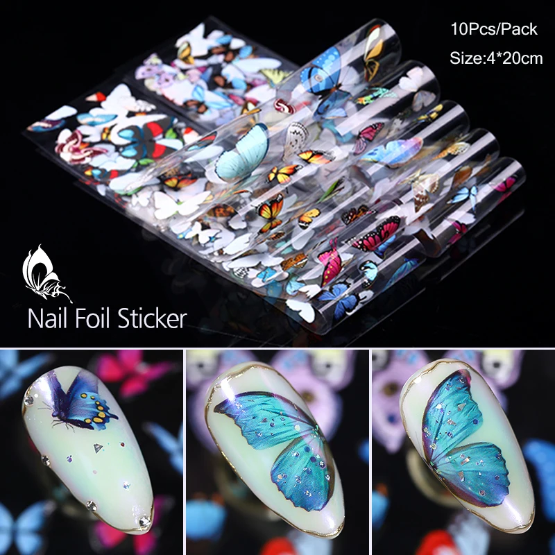 10 шт., переливающиеся наклейки для ногтей в виде синей бабочки