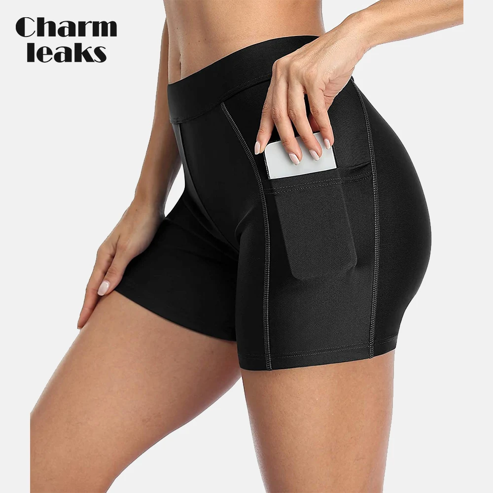 Charmleaks женские однотонные плавательные шорты с карманами, с высокой посадкой, сплошные пляжные шорты, плавки