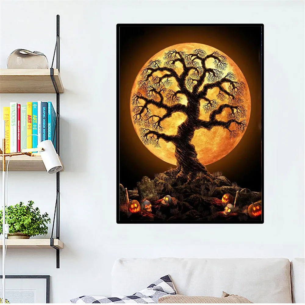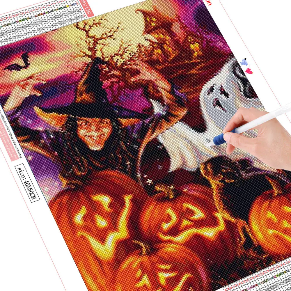 HUACAN полный квадратныйкруглый 5d алмаз рисунок тыквы хэллоуин DIY Алмазная вышивка животные домашний декор настенное искусство