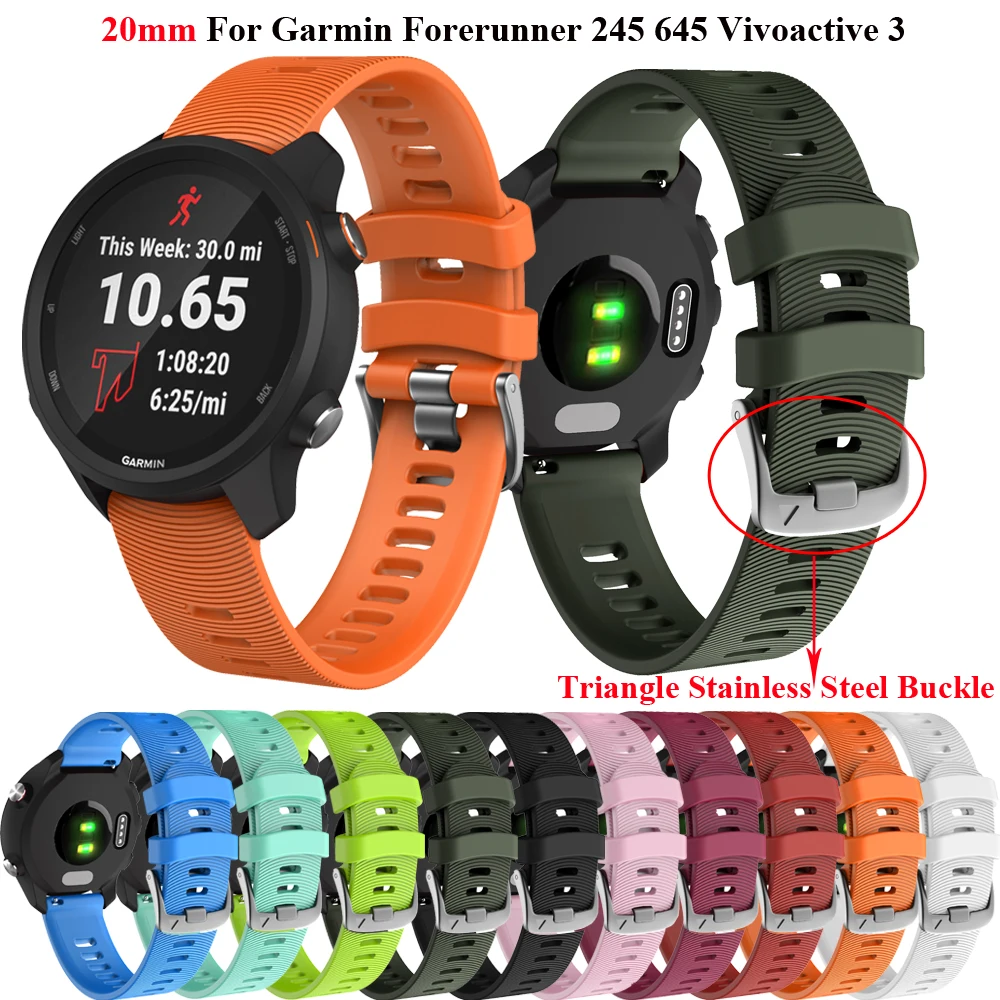20 мм Силиконовые Ремешки для наручных часов Ремешок для Garmin Forerunner 245 245M 645 Vivoactive 3 Смарт браслет ремень замена Браслет