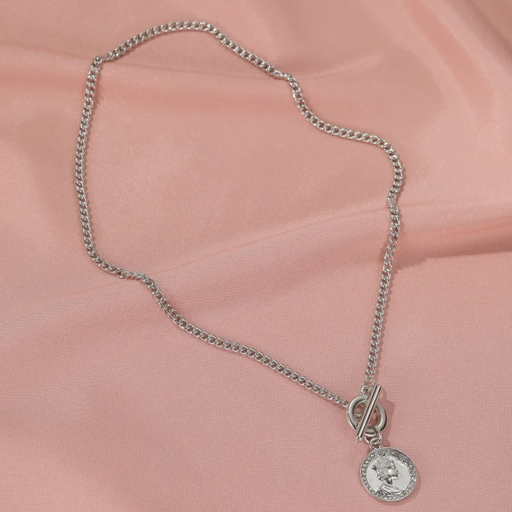 HeadingExquisite Queen Portrait Zircon Round Pendant Necklace