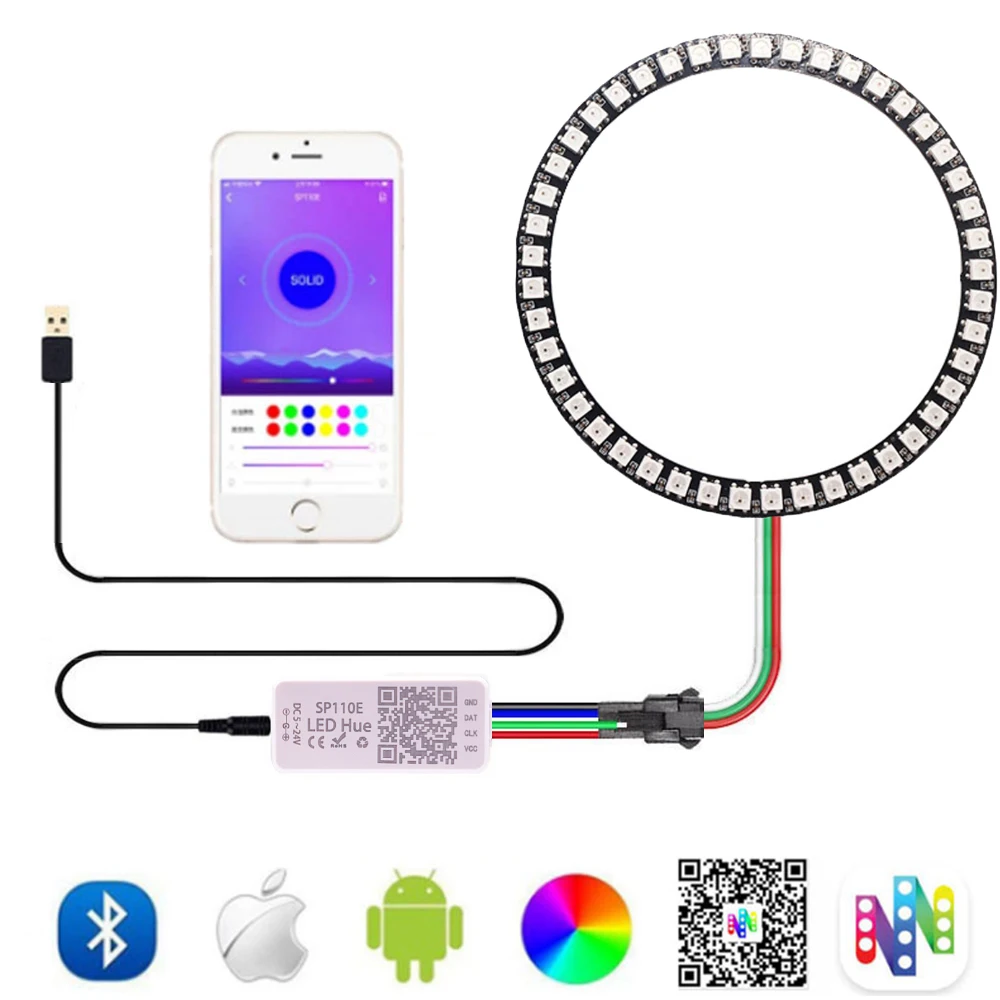 WS2812 светодиодное пиксельное кольцо lndividul адресуемое кольцо 5050 RGB WS2812 IC BuiIt-in Led ModuIe с Проводом USB/DC и SP110E контроллером