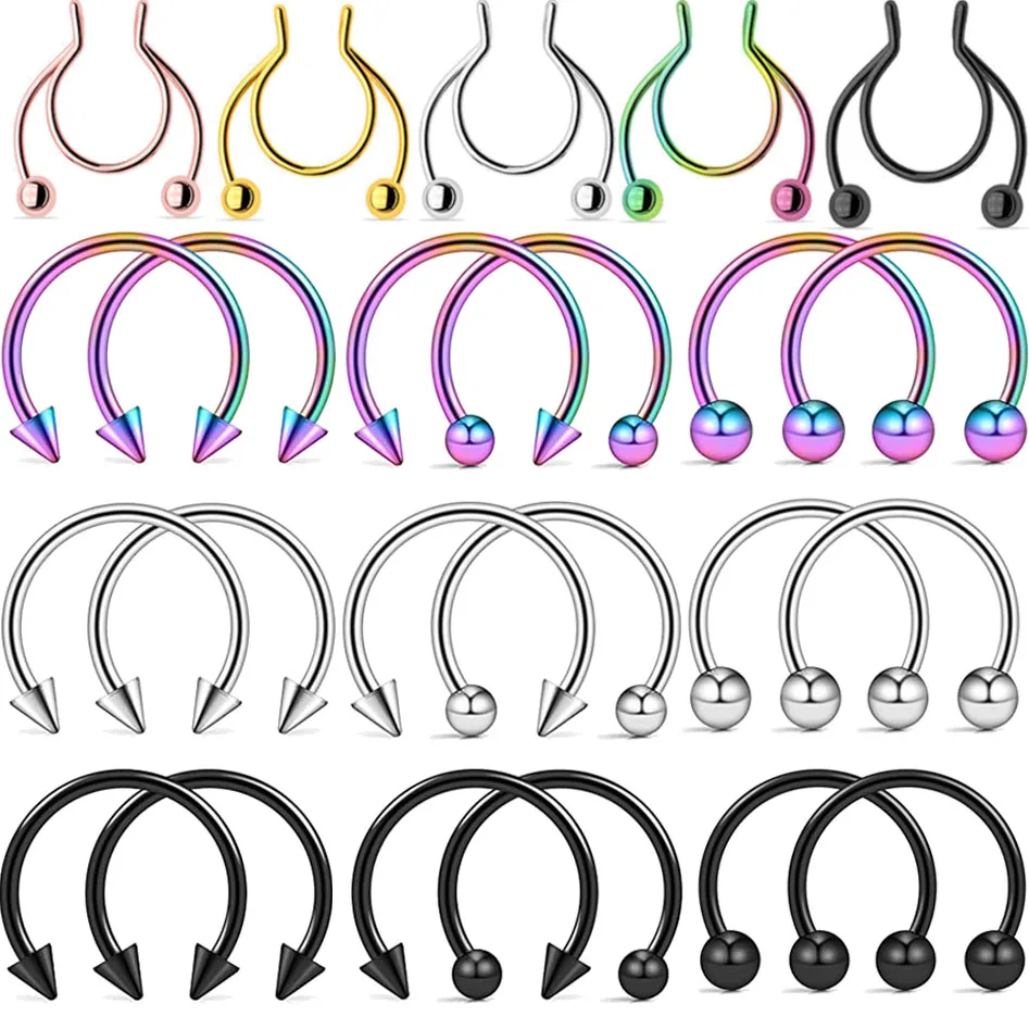 Хирургическая сталь, не вызывает аллергию, C-образное кольцо для носа, бриллиантовые серьги, клипса для пирсинга хрящевой ткани, кольцо для губ, тела, ювелирные изделия, кольца для носа