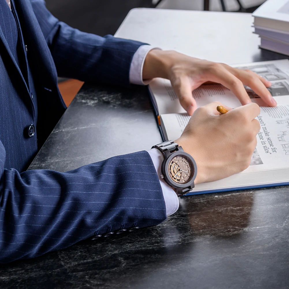 Мужские деловые часы BOBOBIRD, деревянные наручные часы из нержавею...